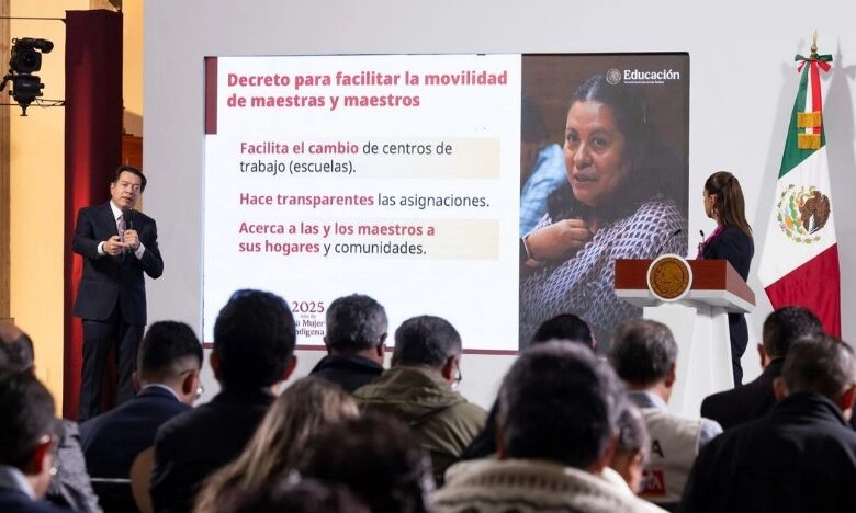 La presidenta Claudia Sheinbaum informó que se publicarán dos decretos en beneficio de los maestros: uno para mejorar la movilidad de los trabajadores de la educación, garantizando traslados más justos entre escuelas, y otro para reducir paulatinamente la edad de jubilación. En 2034, los maestros podrán jubilarse a los 53 años las mujeres y a los 55 años los hombres.